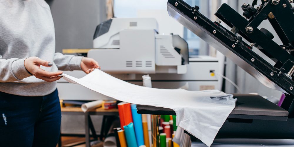 Unsere DTF-Druckmaschinen bringen die Farbe im Tintenstrahldruckverfahren auf speziell beschichtete Transferfolien auf. Fast zeitgleich wird die weiße Farbe aufgetragen. Der noch nasse Farbauftrag wird mit einer Schicht aus Thermopulver überzogen. Das Druckbild trocknet dann schnell. Das spiegelverkehrte Motiv wird dann mit einer Thermotransferpresse auf Textilien oder andere feste Materialien übertragen.